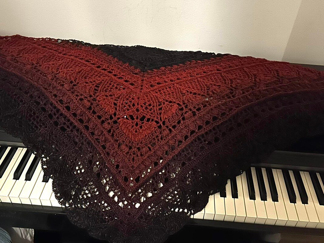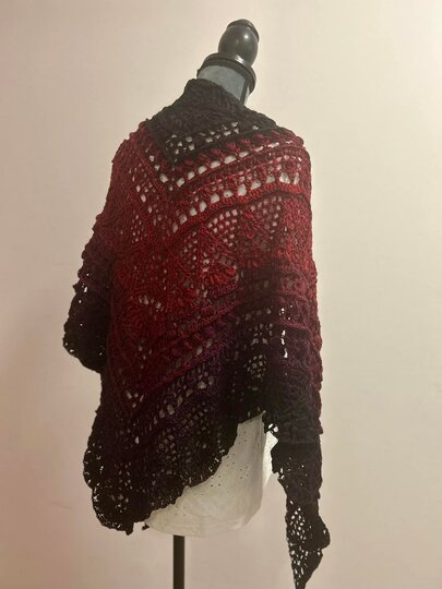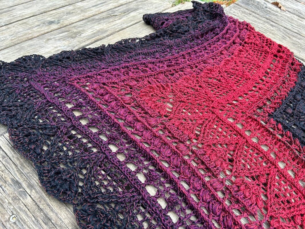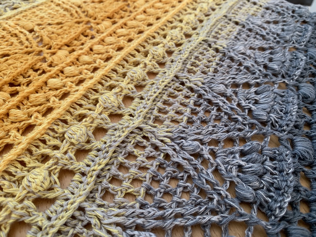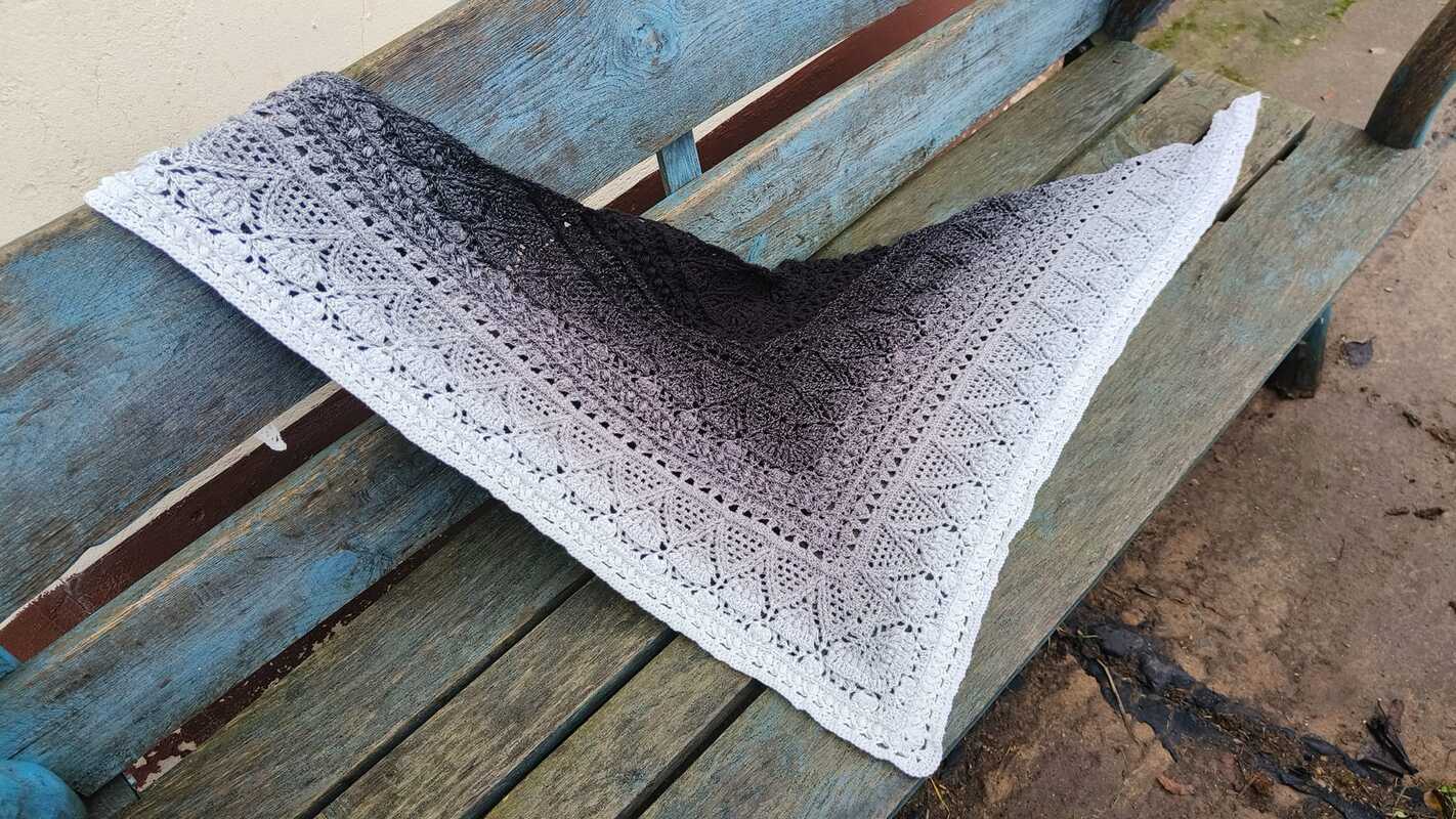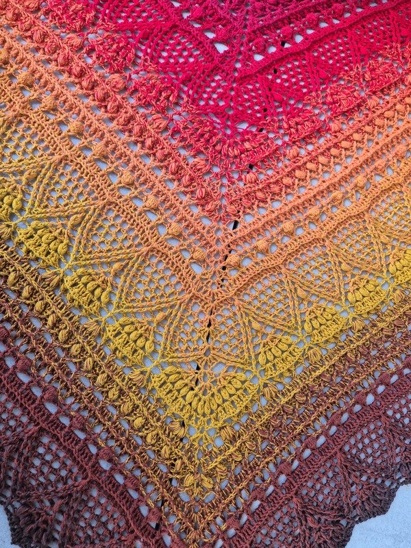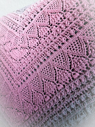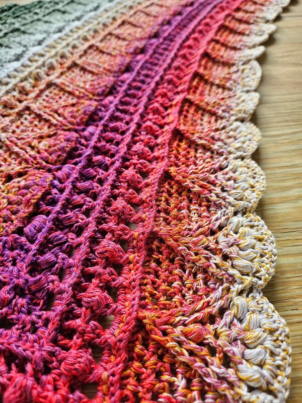 Elysia is a fantastically beautiful, playful, deep triangular shawl that impresses with its beautiful fan pattern. The different patterns ensure that crocheting never gets boring, making it an eye-catcher and wonderful accessory for every season.