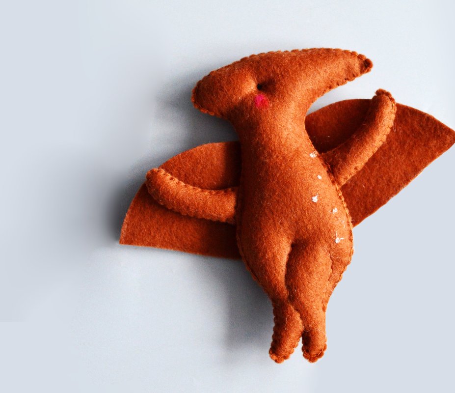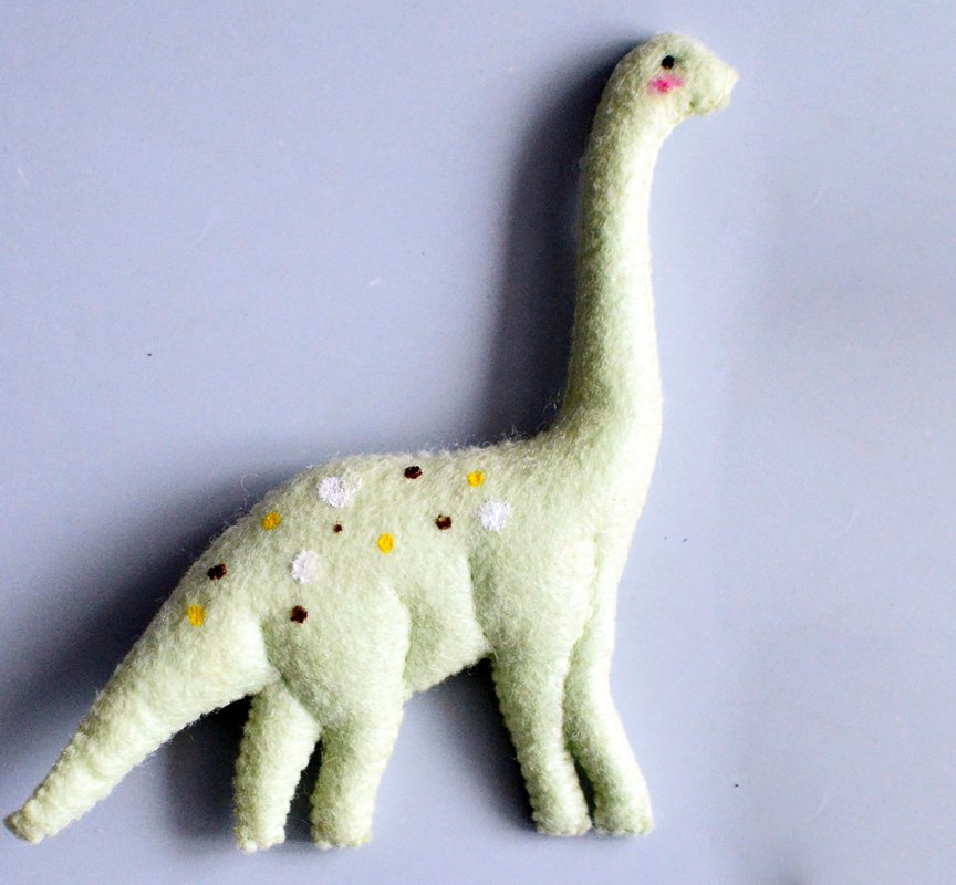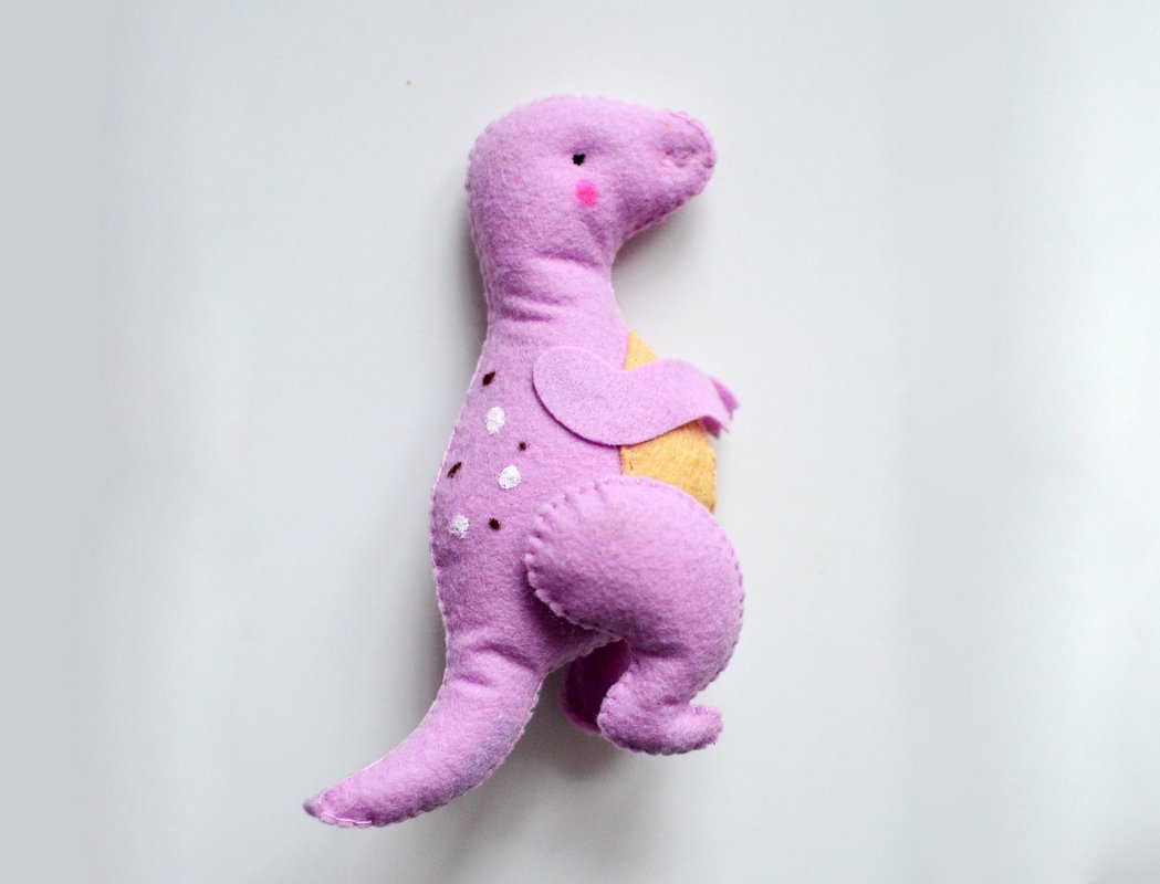 This PDF hand sewing pattern will give you a pattern and step by step instruction to make a 5 Dinosaurs: Brontosaurus, Pterodactyl, T. Rex, Stegosaurus, Triceratops.