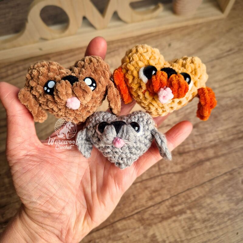 This is a crochet pattern for a dog heart. It is no sew and you can use any yarn you want. This is a perfect gift for valentine's day and every dog lover. You can make keychains out of it. The pattern includes, how to make a loop for keychains. The pattern is designed to be beginner friendly, however you already should now the basic crochet stitches, they are not explained in the pattern. Special stitches are explained in writing in the pattern. No need to watch any videos.
