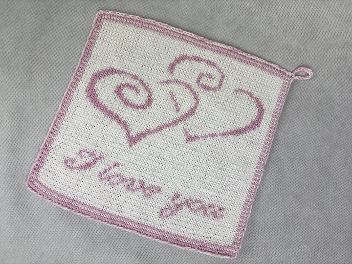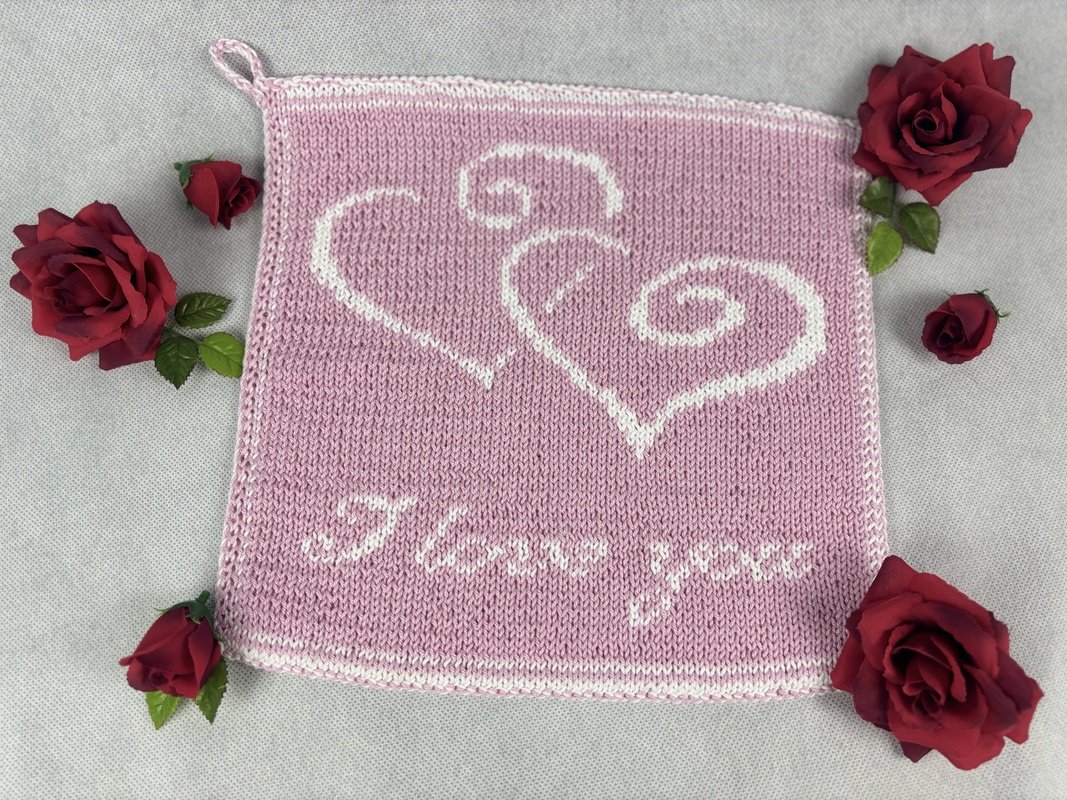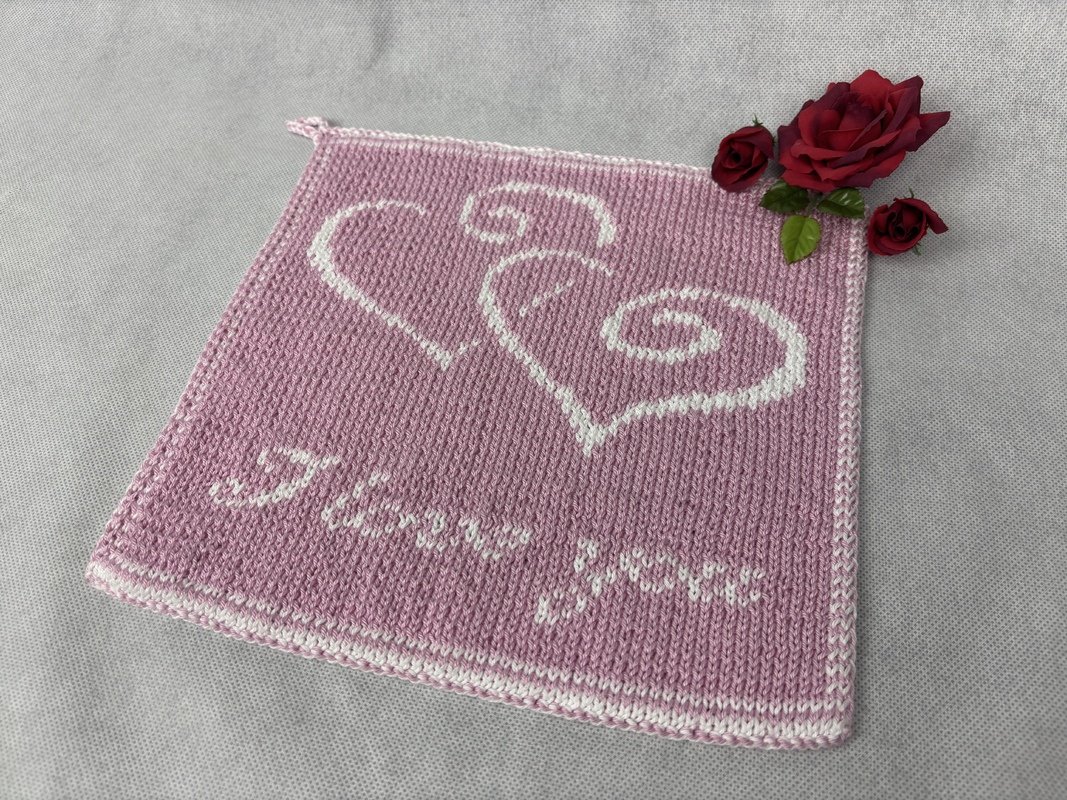Whether for Valentine's Day, a birthday or just because, this washcloth is a heartfelt gift that is sure to bring joy. And every time it is used. So, let's get to the needles. The washcloth is double knitted and is easy to knit and finished quickly thanks to the row by row description.