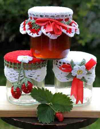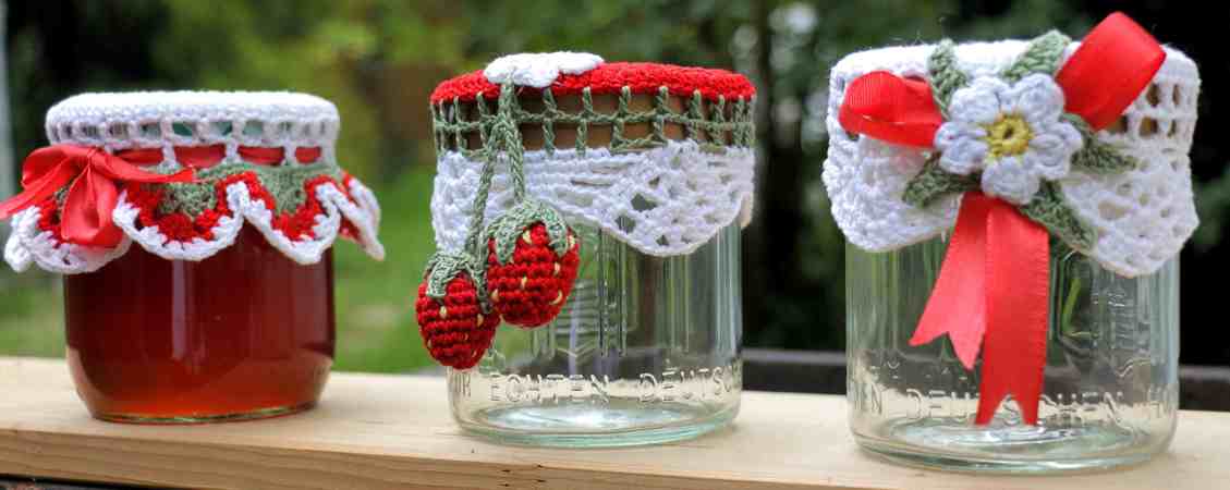 Surprise your breakfast club with these pretty and funny crocheted lids. They are the prefect embellishment for your self-made jam or an extraordinary present that will be a delight for a long time.