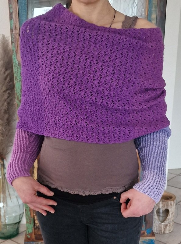Uuuups I dit it again...ich habe einen weiteren Ärmelschal kreiert, aber dieses Mal in einem Fächermuster gehäkelt.