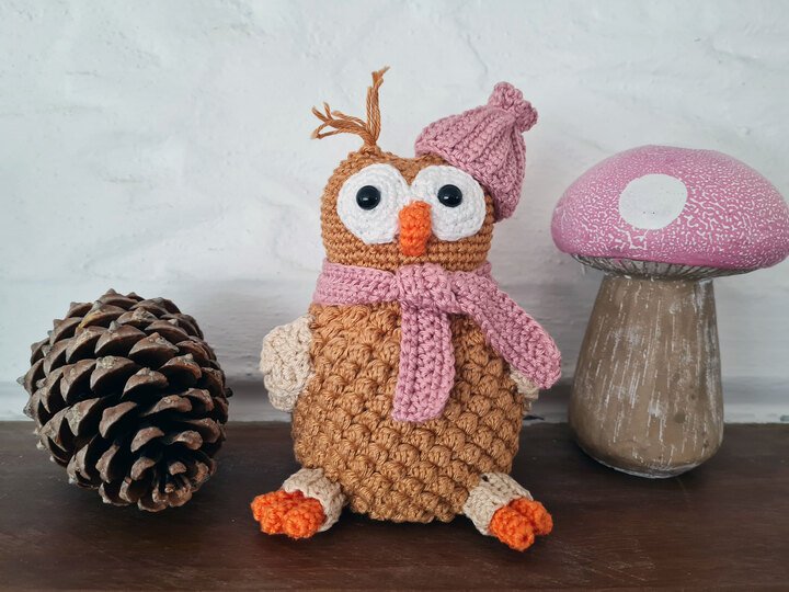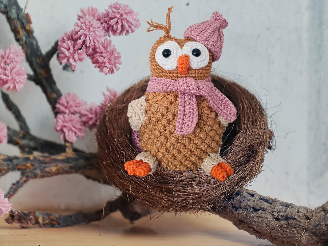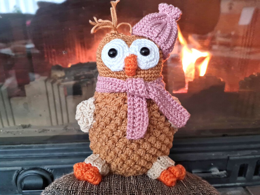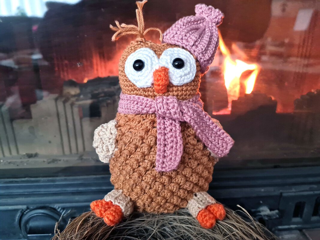 The little owl Hoot has dressed herself in a hat and scarf because it's cold outside. Maybe you'll give her a warm place by the fire when you've finished crocheting her. She likes to just sit there and watch you crochet.