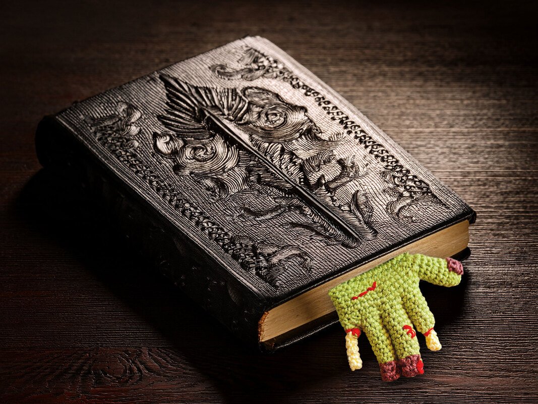 Do you like reading scary stories? Or know someone who likes to read horror novels but doesn't have a decent bookmark? Then the zombie hand is just the thing! It's quick to crochet and will lend zombie, horror and scary fans “a hand” so they don't lose sight of their current book page.