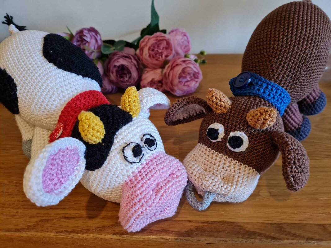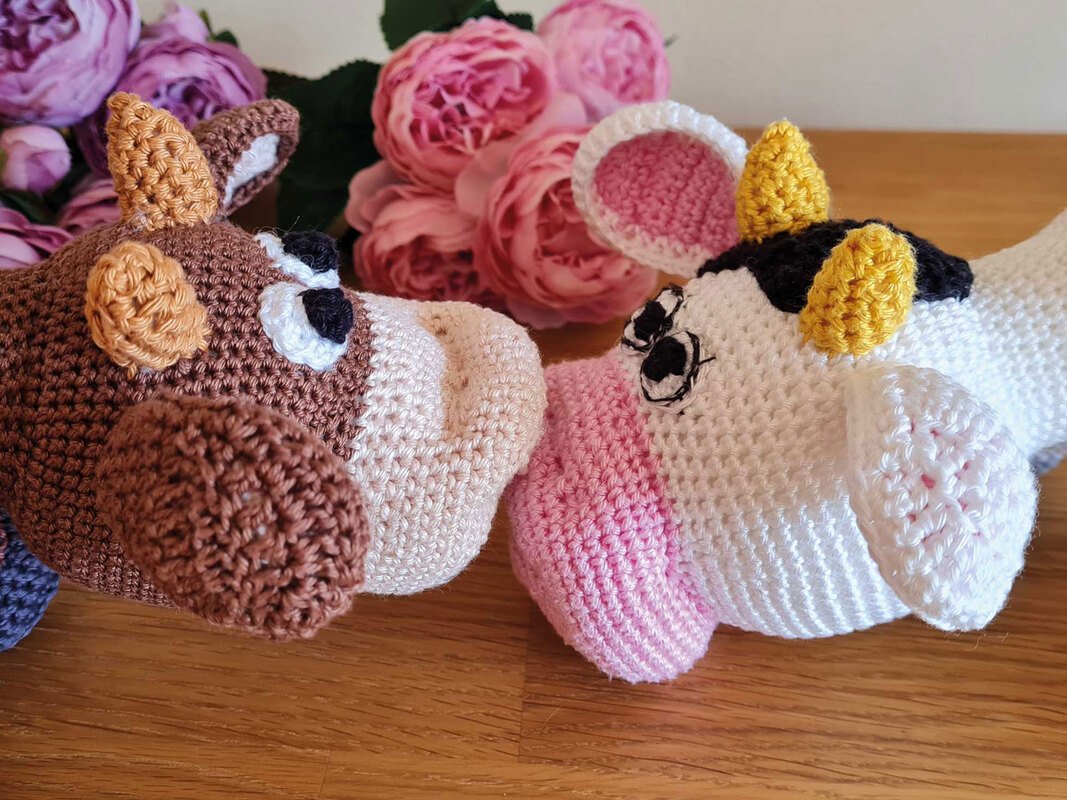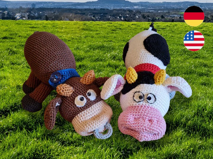 These two crazy cows are waiting for you to find the moo-tivation to crochet them! Camilla and her Bavarian friend Ku(h)rt are adorable cuddly or decorative animals that are mainly crocheted in rounds and do not contain any complicated stitches. They are therefore also suitable for beginners.