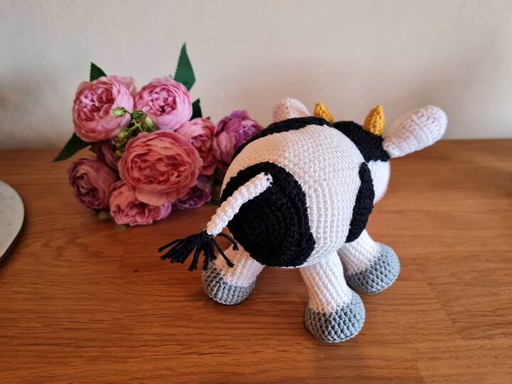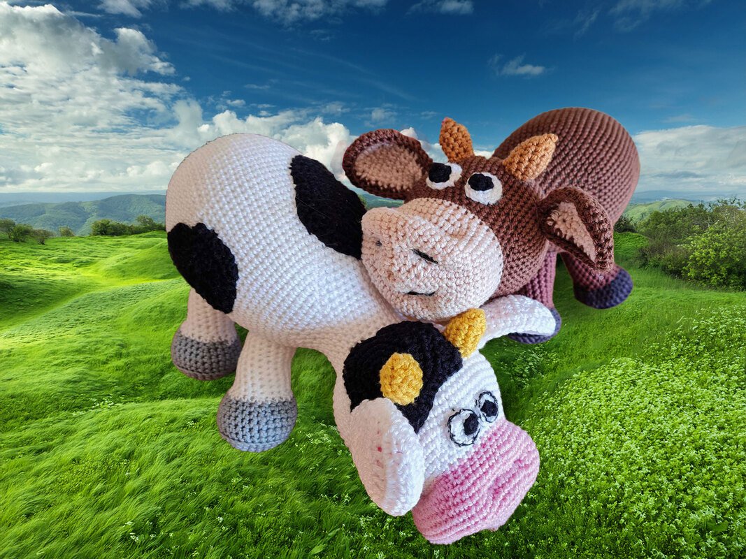 The finished cows are approx. 23cm/ 9" long when crocheted with light/ sport (125g/50m) yarn.