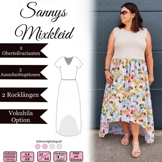 Mix from 2 top, 3 neckline and 4 skirt variants your personal favorite dress.