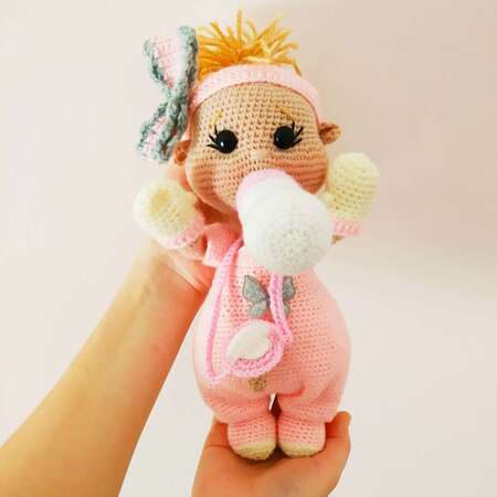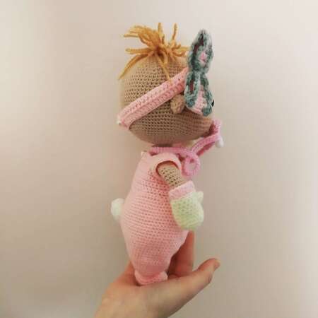 With this pattern you will get a Baby doll about 25 cm (9,84″) hight. The dimension depends on yarn size and crochet hook size). I used the hook 2 mm and yarn 100g/300 meters, 328.08 yrd/ 3.5 Oz.