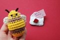 We crochet the tiny bee in coniuous spiral rounds and the envelope in rows.