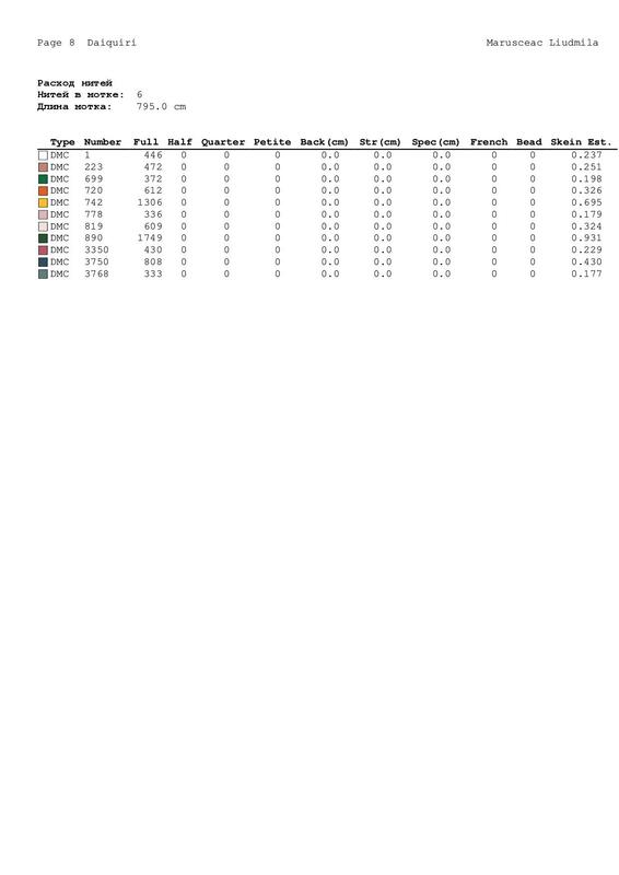 In the diagram, embroidery various colors of thread are indicated by different symbols or colored squares.