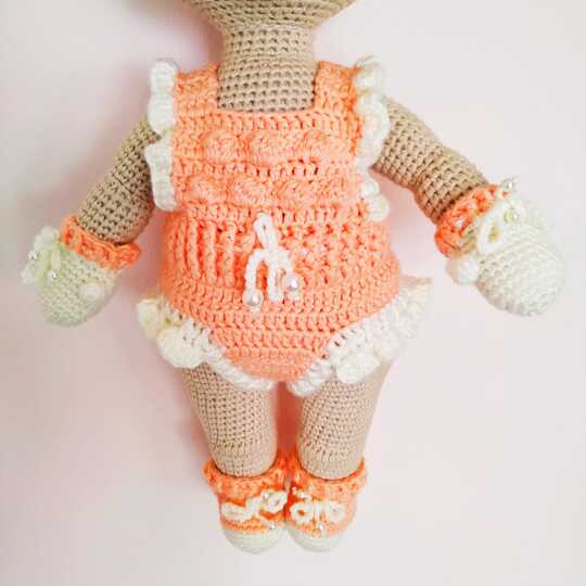 This crochet pattern contains a detailed description with a lot of step-by-step photos of how to crochet Baby doll Lulu in cute bodysuit.