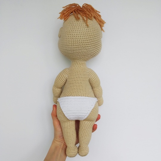 With this patterns you will get a Doll about 32 cm (12,6″) high. The dimension depends on yarn size and crochet hook size. I used for the body the hook 2.00 mm (US B/1) and yarn 100 g/250 m (3,53 oz/273yds).