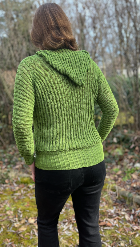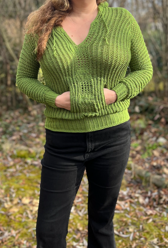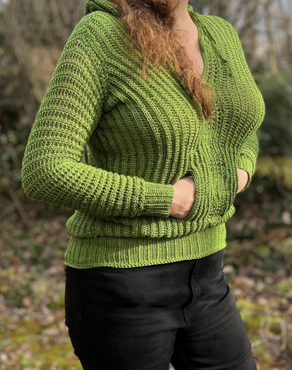 Casual, green hoodie with a trendy wave pattern border and practical pockets. Your new favorite companion for relaxing days.