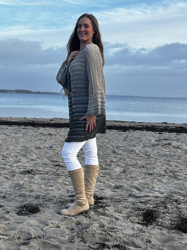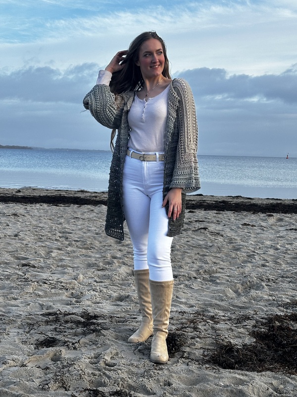 Je nach Garnauswahl, kann man die Jacke in jeder Jahreszeit tragen. Besonders gut eignen sich hier Farbverlaufsgarne, weil sie mit einem Rutsch von der Häkelnadel hüpft.