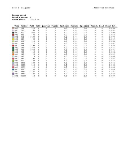 In the diagram, embroidery various colors of thread are indicated by different symbols or colored squares.
