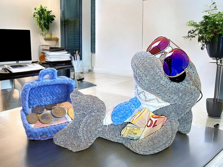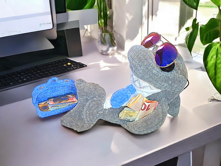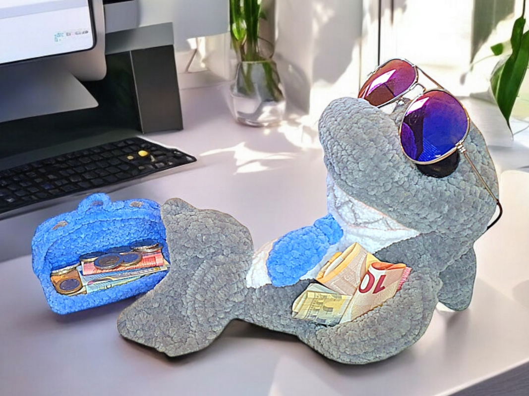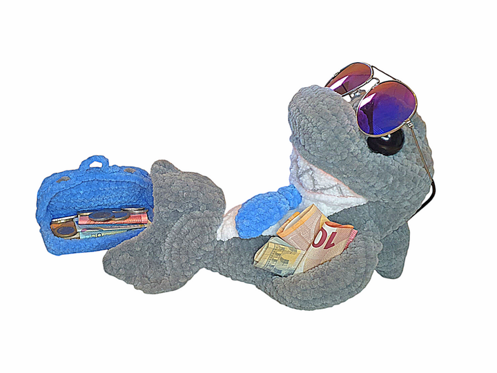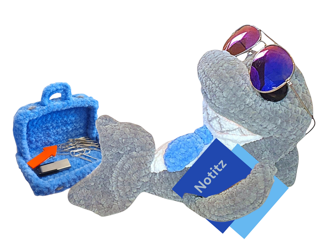 Maney the financial shark is a fun office accessory and a practical glasses holder at the same time. His case has space for paper clips, USB sticks and other useful little things, so they are always handy and in plain view. If you want to give Many as a gift, you can also fill the case with banknotes or other great things. There is plenty of space for the notes under his fin. Otherwise, important notes can be placed here.