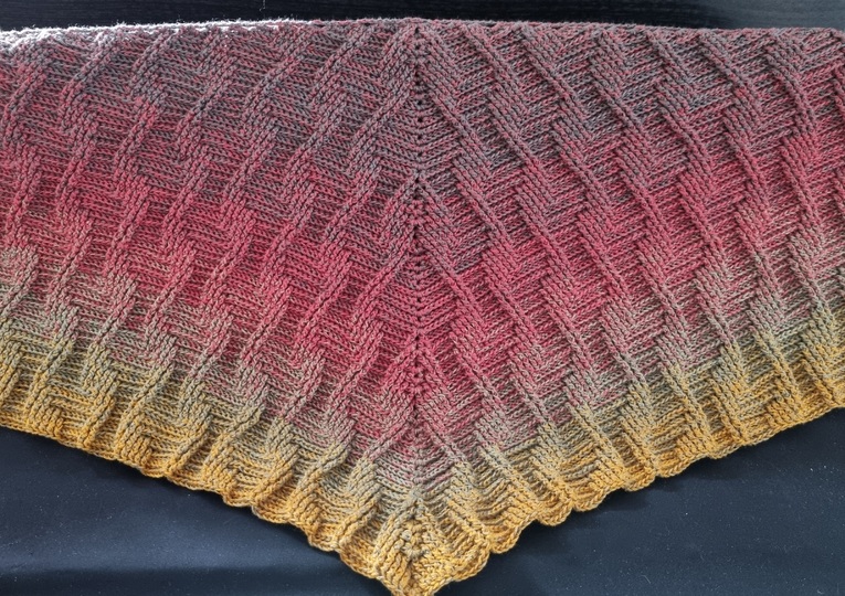 It is a flat shawl with a very interesting structure thanks to the mix of FPdc and BPdc. It is fine for beginners in crocheting.