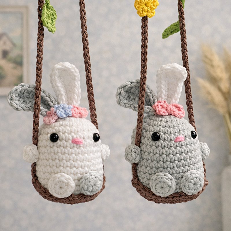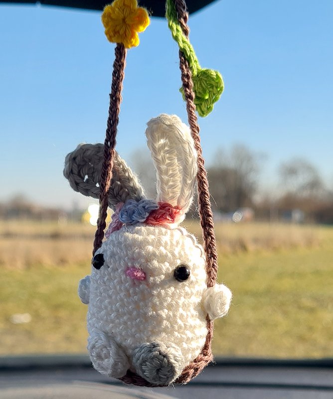 Whether on an Easter bush, in the car as a rear-view mirror pendant, swinging in a houseplant, on a cupboard handle or as a bag dangler, these cute bunnies on a swing are always a great decoration that will make people smile.
