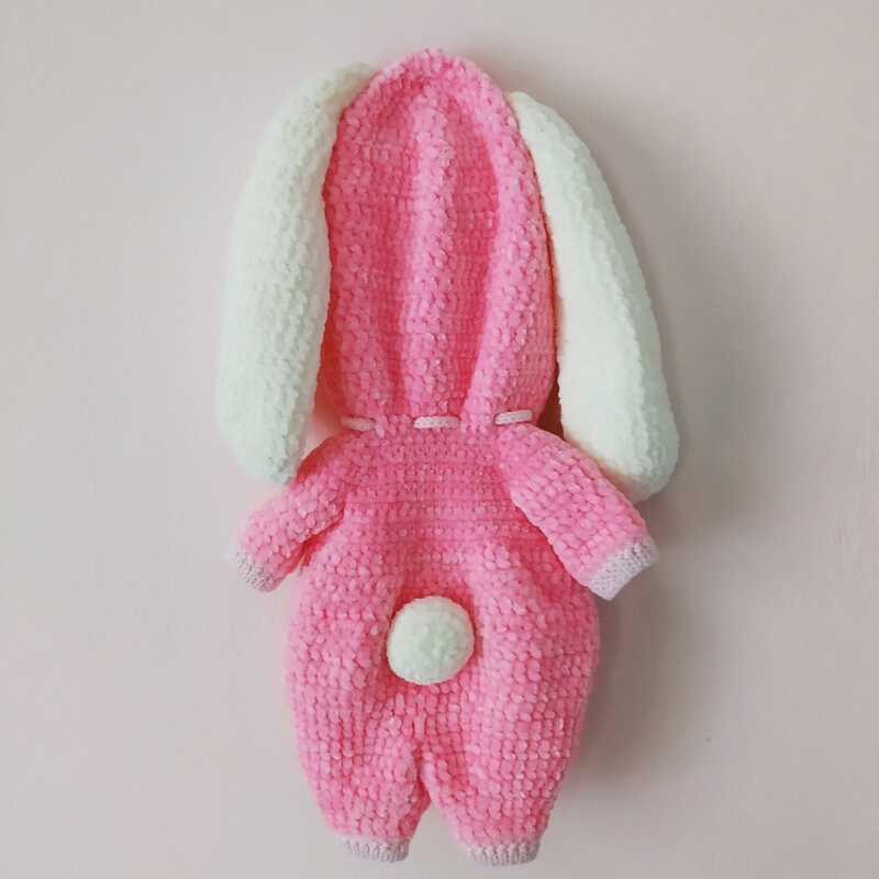 This crochet pattern contains a detailed description of how to create clothes for Doll in Bunny jumpsuit, booties and amigurumi little bunny toy with a lot of step-by-step photos.