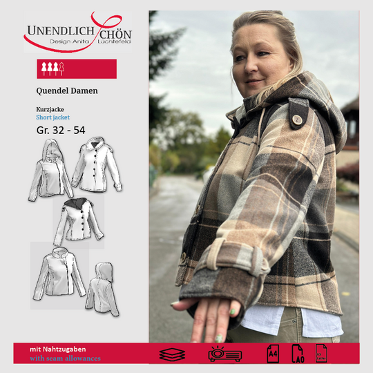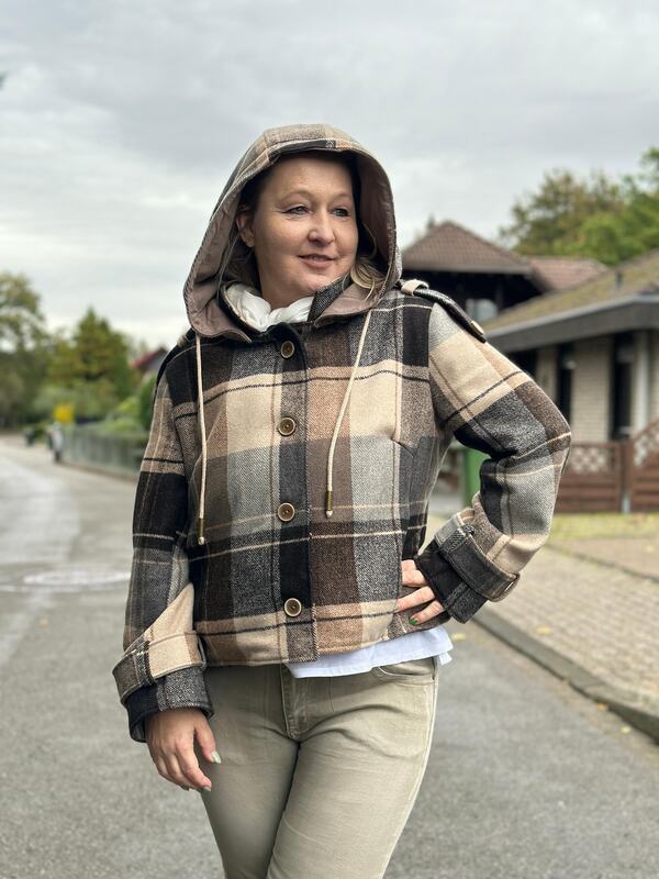 Originally designed as a winter short jacket, Quendel has proven to be a true all-rounder during test sewing. With two length options – a classic short jacket and a version shortened by 8 cm – it adapts to different styles and needs.