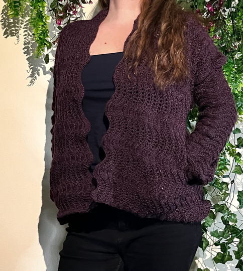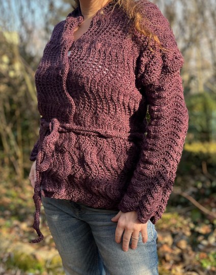 This cardigan is perfect for the transitional period. Practical with a belt that can be tied up when it gets colder and the pockets give the jacket a touch of casualness. The 3D wave pattern provides the finishing touch.
