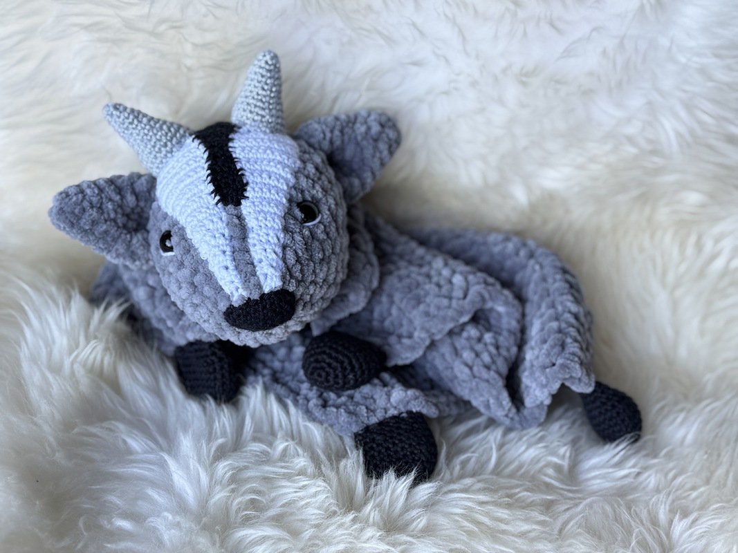 Get the lovingly designed crochet pattern for this adorable goat lovey. At about 35×27 cm, it's the perfect cozy companion.