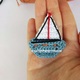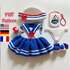 • Catania yarn or FIOCCO (100% cotton; 50 g/125 m; 1,75 oz/137 yds) 106 white (72 gr) for dress, panties, hat, collar, bag and sandals, 201 navy-blue (80 gr) for dress, hat, collar and sandals, 115 red (7 gr) for bow, hat, sandals and bag, 380 gray (2 gr) for ship, 383 brown (1 yd/1 m) for ship, 110 black (1 yd/1 m) for ship;
