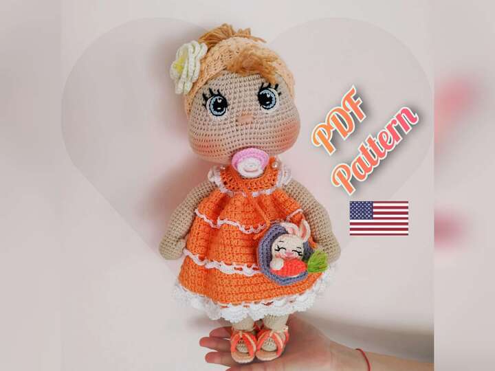 This crochet pattern contains a detailed description with a lot of step-by-step photos of how to create Baby Doll and outfit.