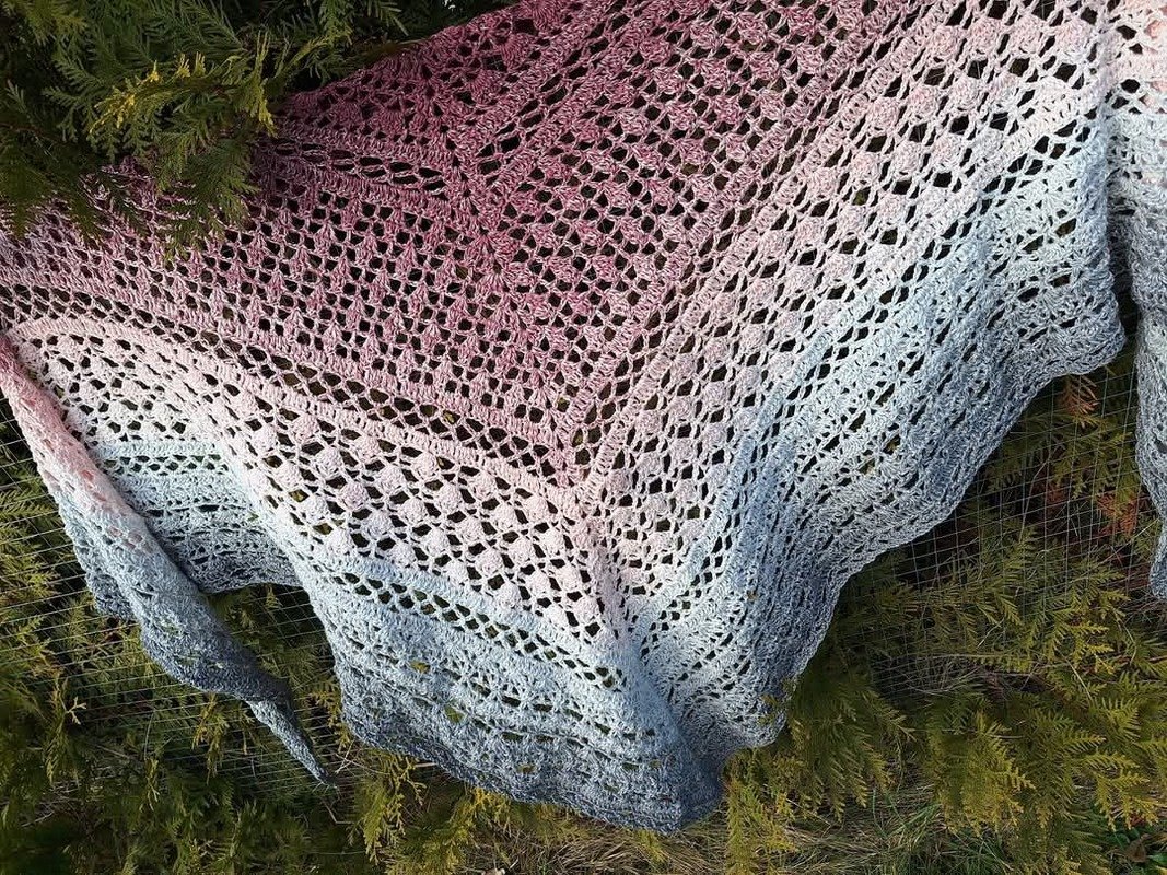 Es kann mit jedem gewünschten Garn gehäkelt werden, ich würde dazu einen Farbverlaufsbobbel mit 1000-1100m empfehlen. Und die passende Häkelnadel dazu.