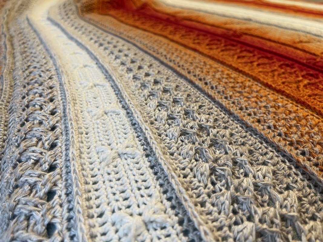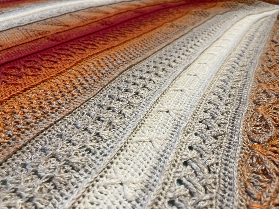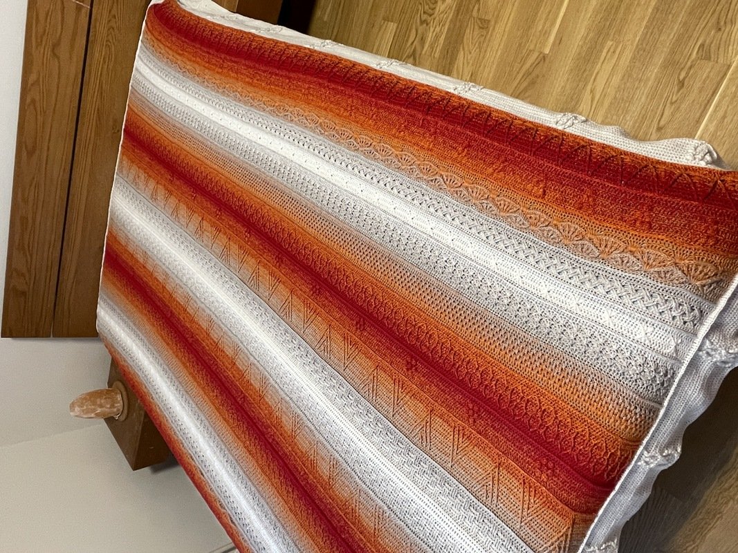 The magic blanket is crocheted in rows in a special way and therefore looks particularly beautiful with gradient yarn. First one side is crocheted with 12 patterns and then the other side. The patterns are variable and the blanket size can also be easily adjusted.