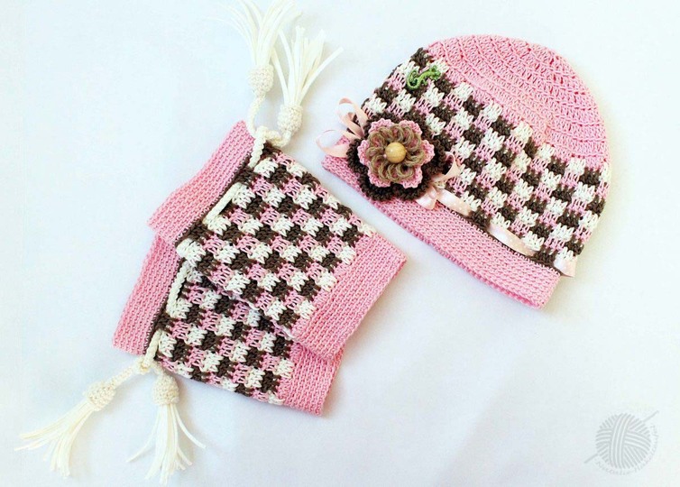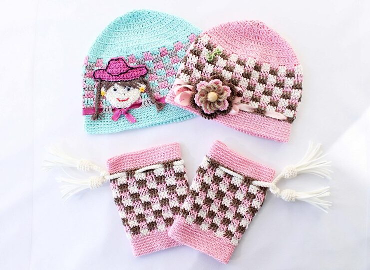 Mit dieser Anleitung können Sie Tasche, Mütze und Beinstulpen in country look für Ihr Kind (Enkelkind) häkeln.