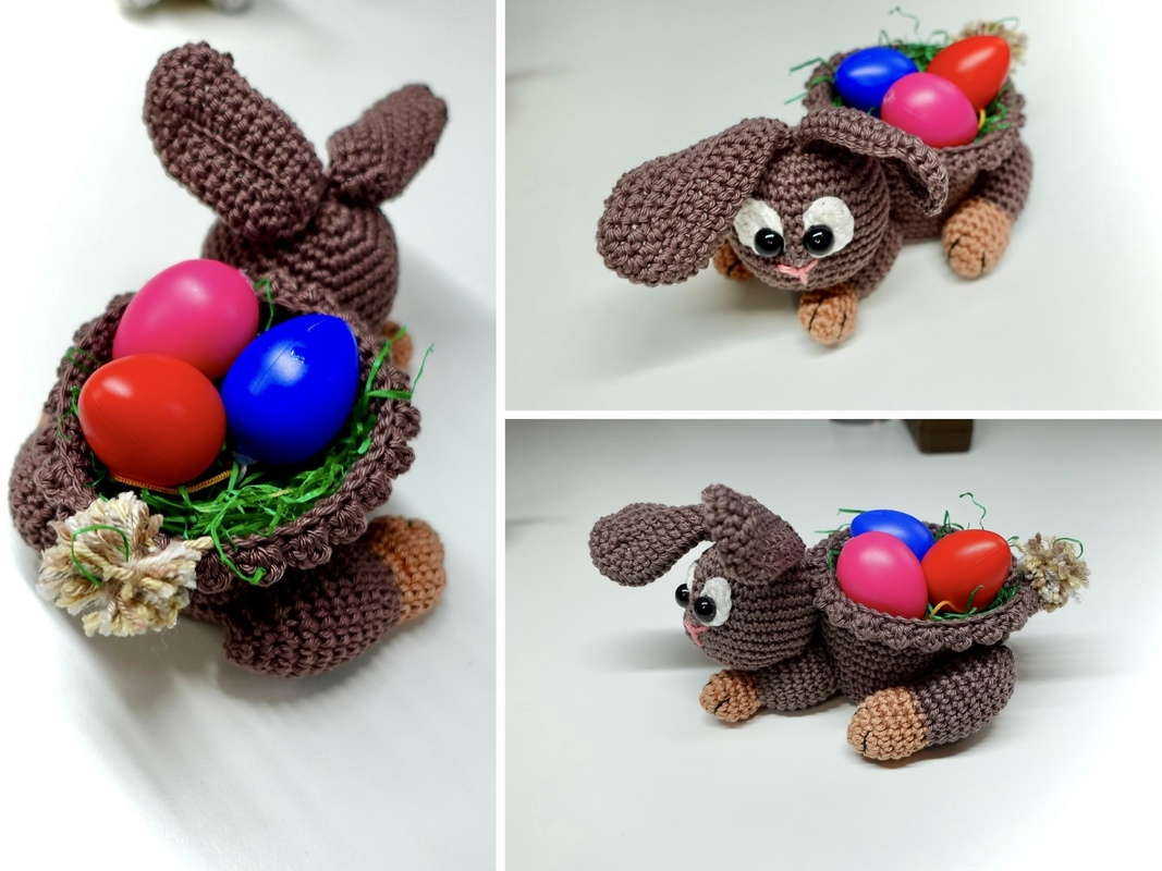 This cute bunny is not just an eye-catcher but also super practical! Whether as a pencil holder, needle container, or a small Easter nest – with this crochet pattern, you can create a sturdy, double-walled container that’s versatile and functional.