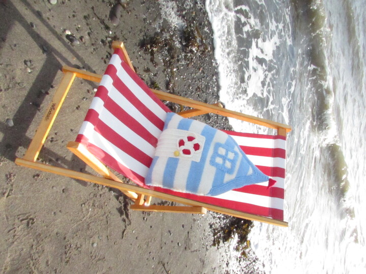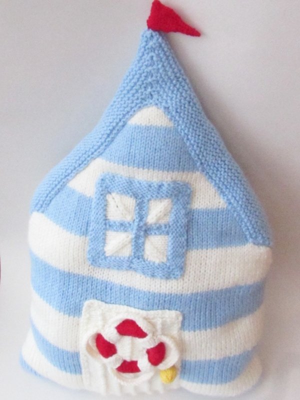 This product is the knitting pattern only; to knit your own Beach Hut Cushion.