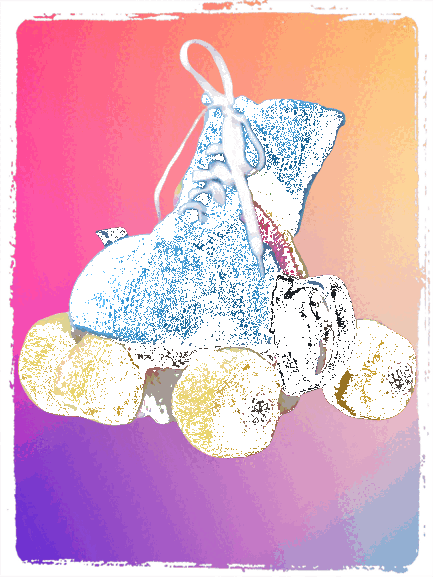 Threaded with a real 100cm-long shoelace and glittery laces for that disco vibe, the roller boot look is complete with chunky wheels and a big yellow rubber stopper.