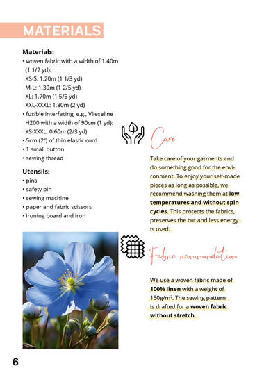 Whether worn casually with sandals and a straw hat or jazzed up with a chic belt and statement jewellery – this dress adapts to your style and always cuts a fine figure. Whether you’re a sewing pro or just starting out – this linen dress pattern is suitable for everyone. With detailed instructions and step-by-step pictures, using the pattern to make a dress is child’s play.