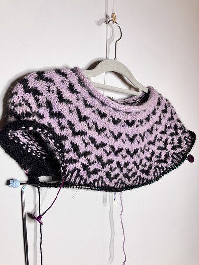 Waste yarn, extra cord (e.g. from interchangeable circular knitting needles) or 2 stitch holders for