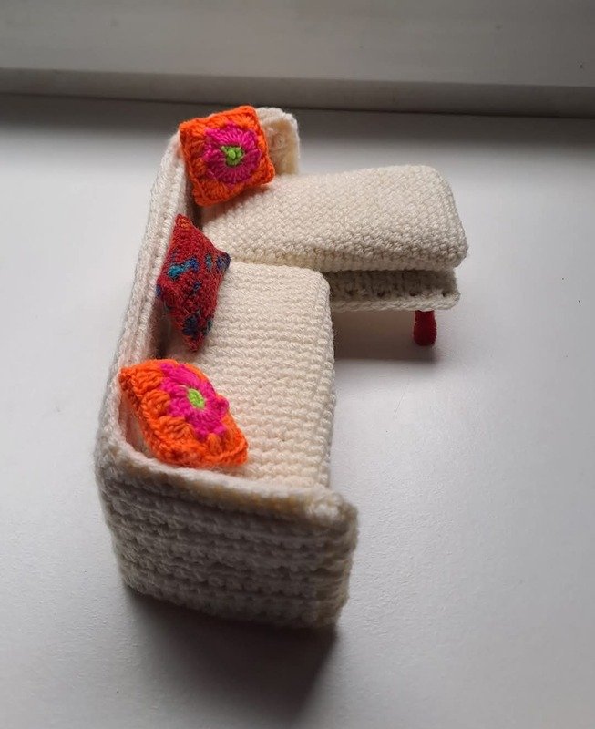 With this step by step crochet pattern you can easily crochet a couch for dolls.
