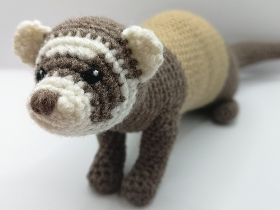 The ferret is not difficult to crochet, but rather a bit more complex, as almost every round the increases and decreases are distributed differently to achieve this realistic shape. However, due to the clear design of the instructions with many pictures, this is easy to follow.