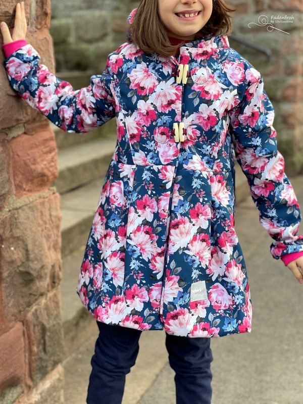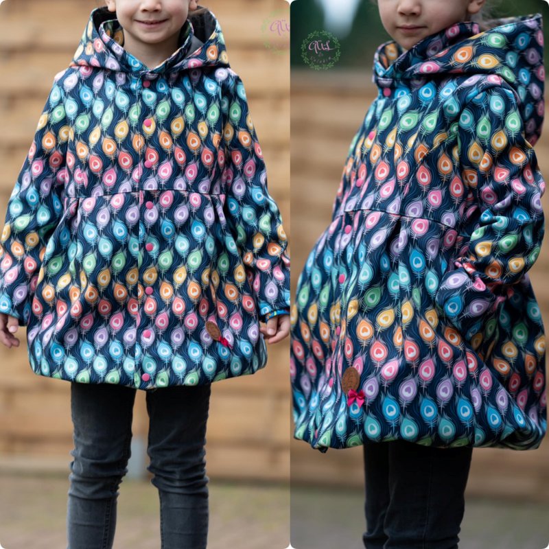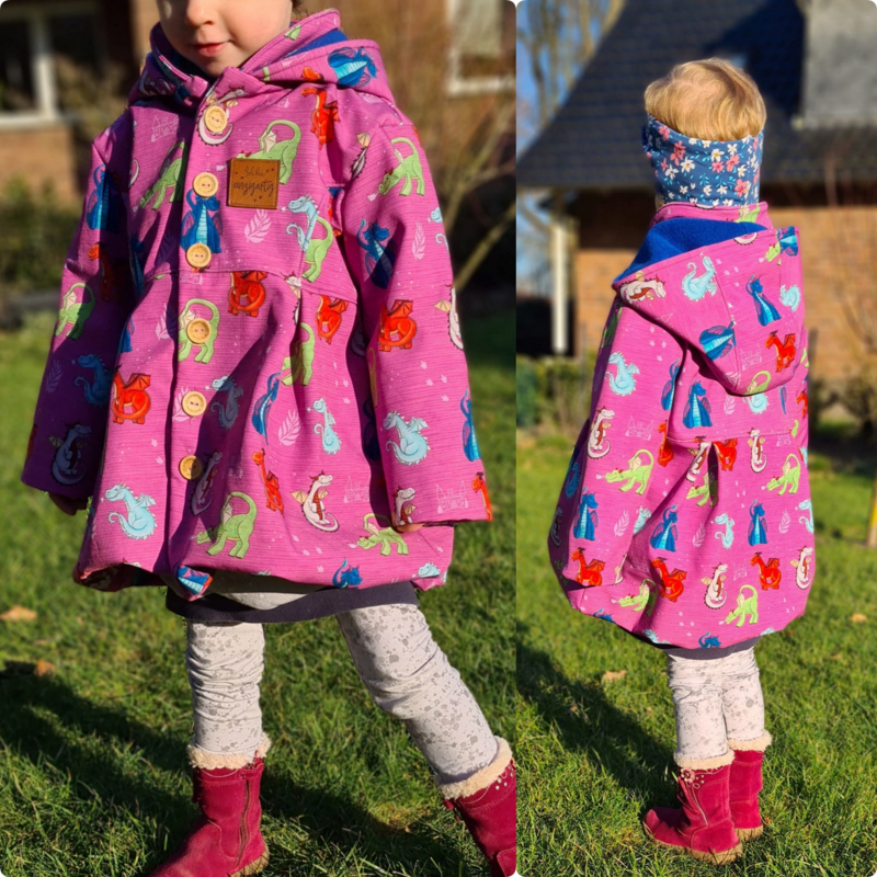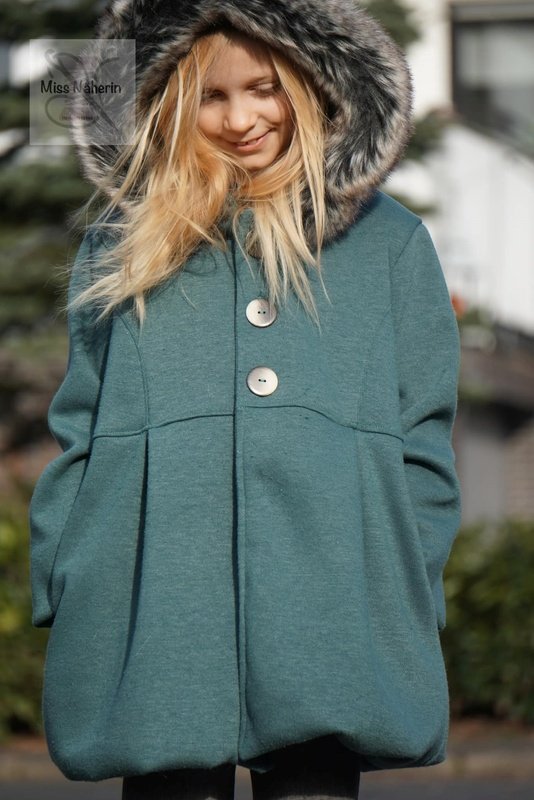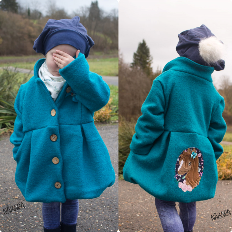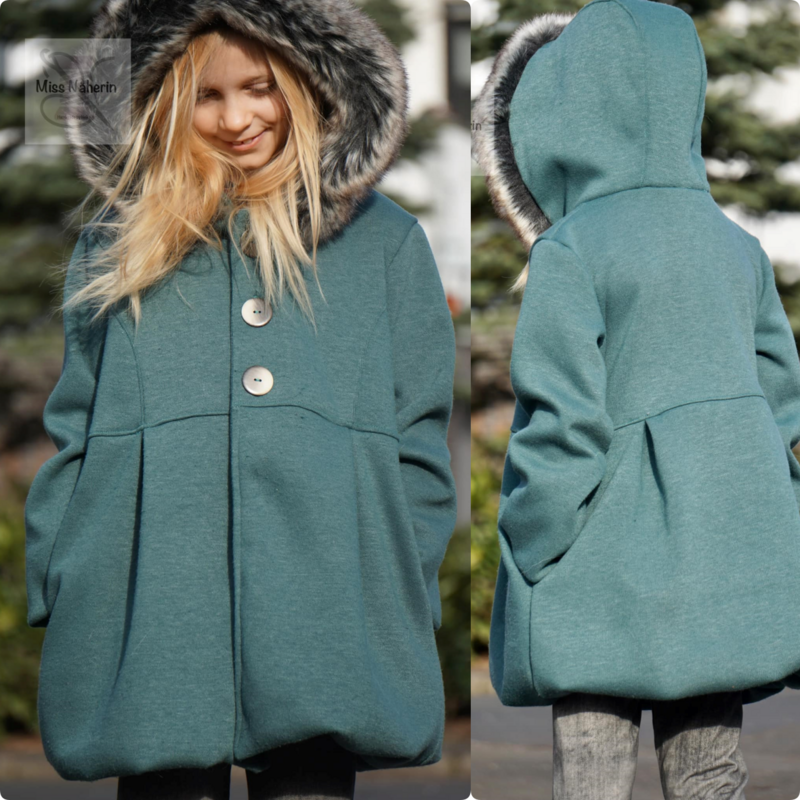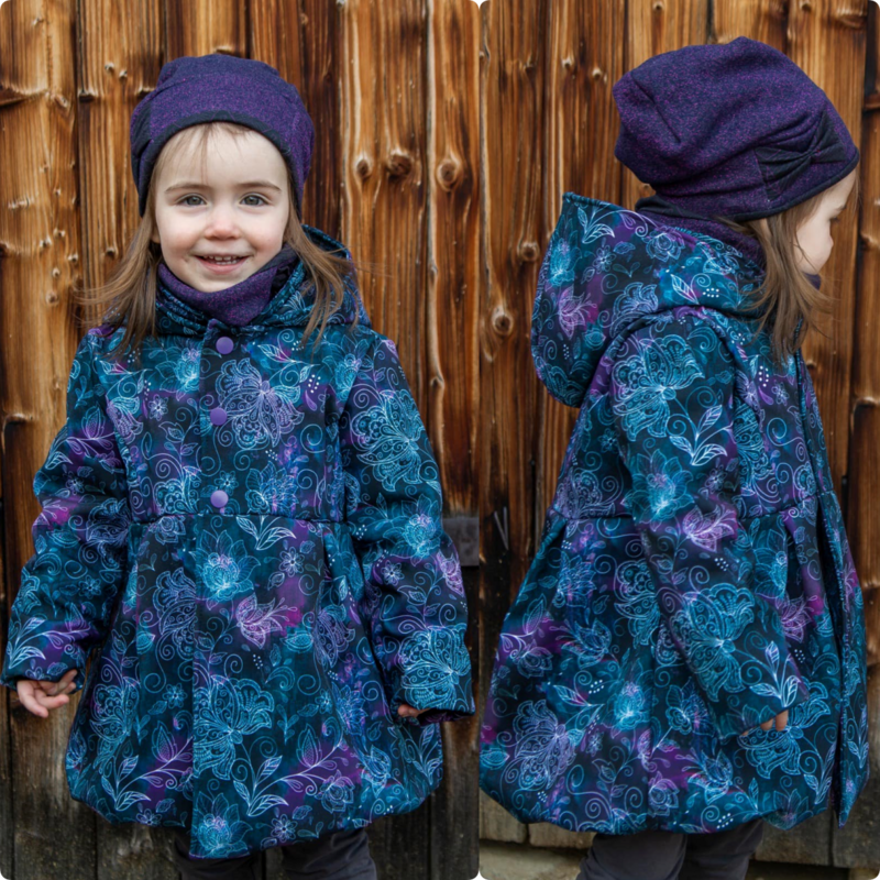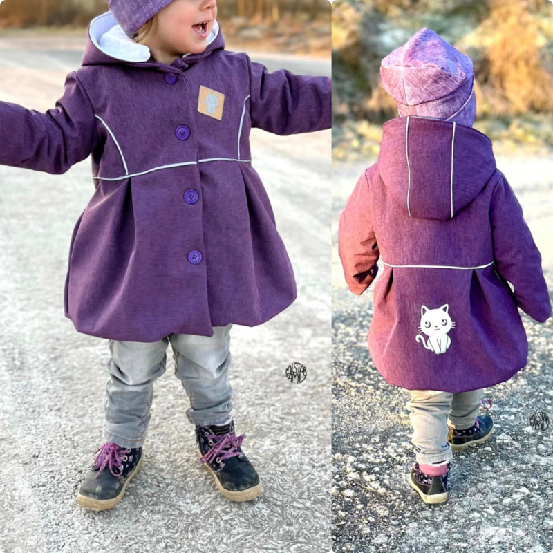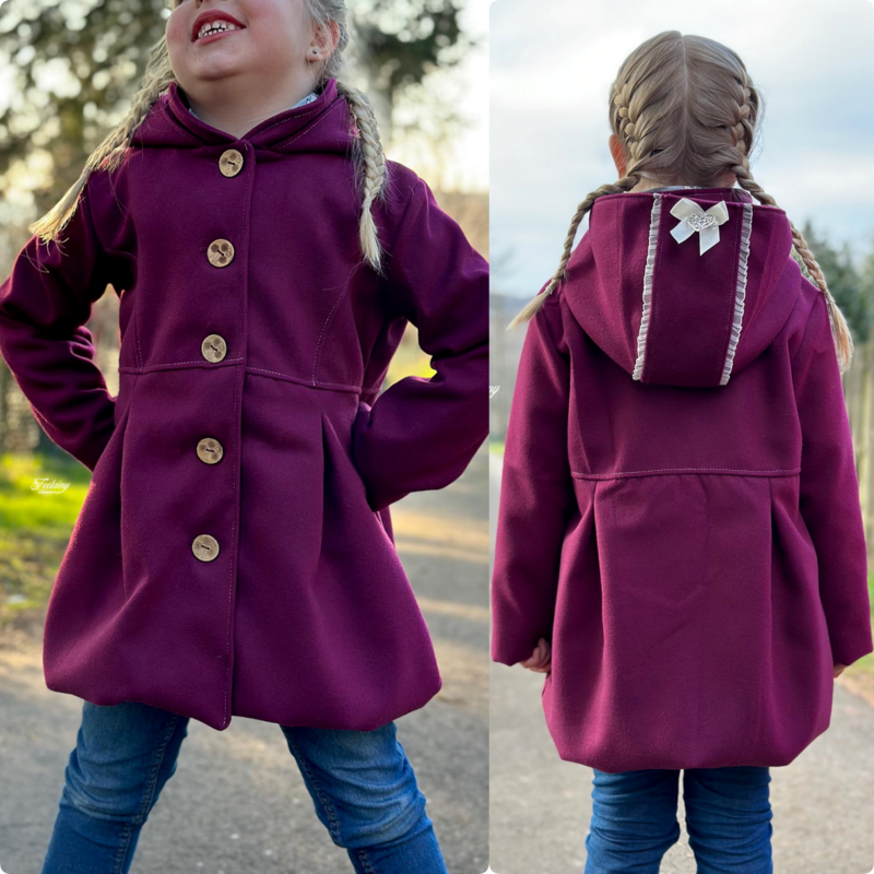 Apricotta ist das Schnittmuster zu einem verspielten Kurzmantel mit vielen schönen Highlights. Das Schnittmuster umfasst die Echtgrößen 80 bis 152 und passt bei einer Körpergröße von 80 bis 157cm. Apricotta kann aus verschiedensten, nicht dehnbaren Stoffen genäht werden und somit sowohl als Winterjacke, als auch als Übergangsjacke genutzt werden. Der Schnitt verfügt über eine freche Länge und einen ballonartigen Abschluss, welcher durch den Fall der integrierten Kellerfalten unterstützt wird. So entsteht eine tropfen- bzw. blütenartige Form. Abwechslung bringt der Kurzmantel durch den optionalen Kragen und die optionale Kapuze, welche natürlich auch in Kombination verwendet werden können. Wird der Kragen außen angebracht (also um die Kapuze herum), wird er beim Tragen umgelegt und bietet einen schönen Rahmen. Wird der Kragen innen angenäht, ist es ein kleiner Stehkragen, der zusätzlich für Wärme sorgt. Apricotta wird mit Belegen und einem Innenmantel aus Futterstoff genäht. Diese Details sorgen nicht nur für eine schöne Optik, sondern auch für einen hochwertigen Look. Optionale Taschen runden den Mantel ab.