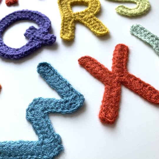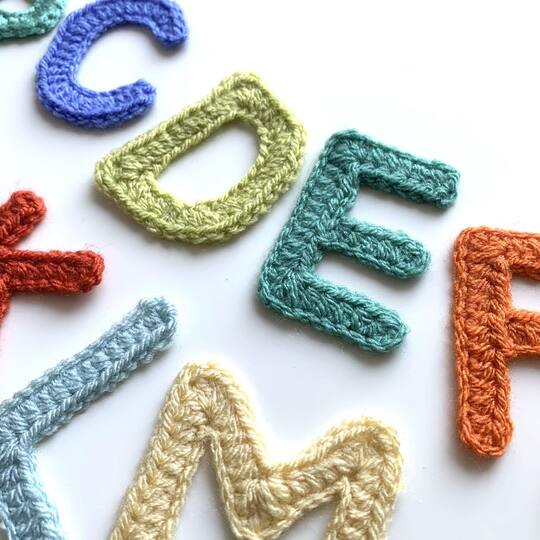 It’s a fantastic way of using up leftover yarns. Crochet your little one’s name, a favorite word of your own, or the entire alphabet!