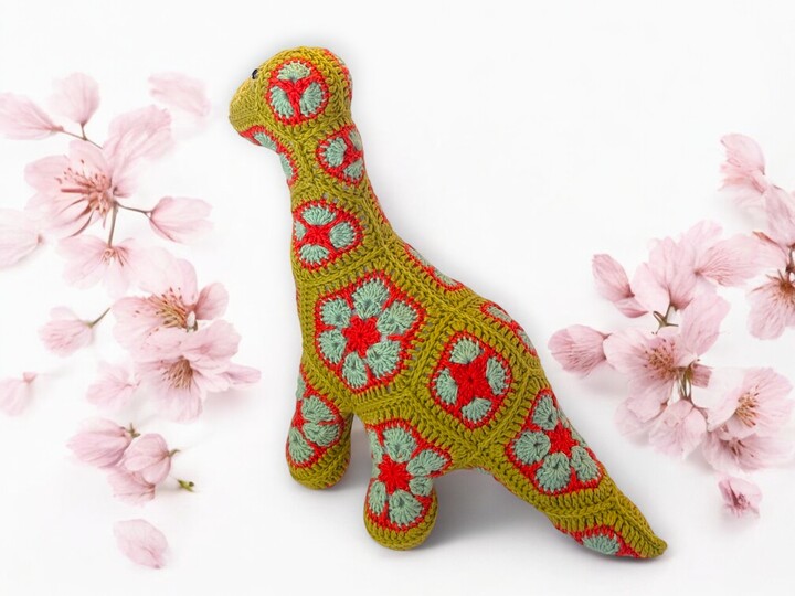 Using the African Flowers technique, you can create a unique cuddly toy that won't just delight dinosaur fans. The detailed step-by-step tutorial with numerous pictures will guide you safely through the entire process, from crocheting the individual flower motifs to assembling the baby dinosaur. A wonderful instruction for experienced crocheters who want to expand their skills and create a special project.