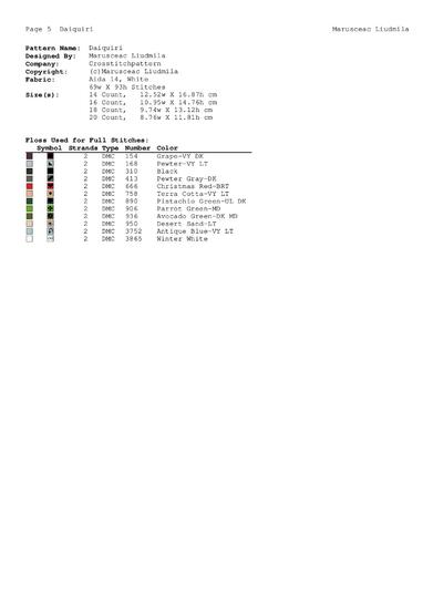 A Symbol Key page in DMC floss code