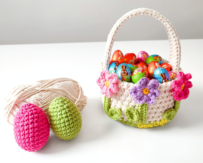• "Spring Flowers" Basket https://www.crazypatterns.net/en/items/90927/spring-flowers-basket-and-easter-eggs-easter-crochet-pattern