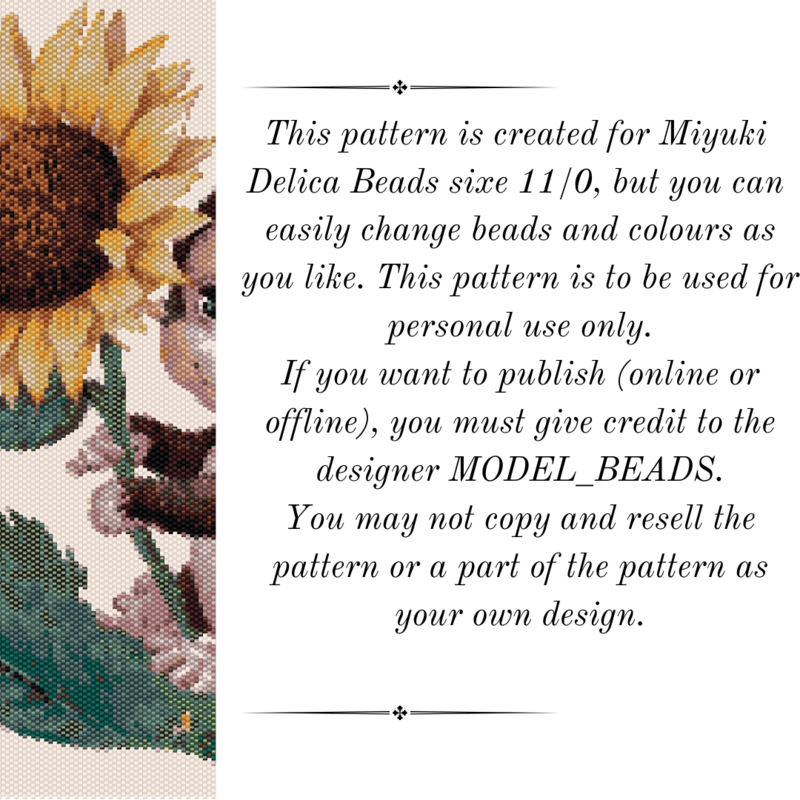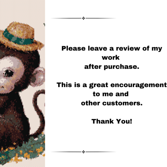 This charming design features a sweet monkey holding a sunflower, radiating happiness and warmth. The rich earth tones and vibrant yellow hues make this piece a delightful addition to any beadwork collection. Perfect for those who enjoy detailed designs and expressive animal motifs, this pattern is sure to bring joy to every stitch.