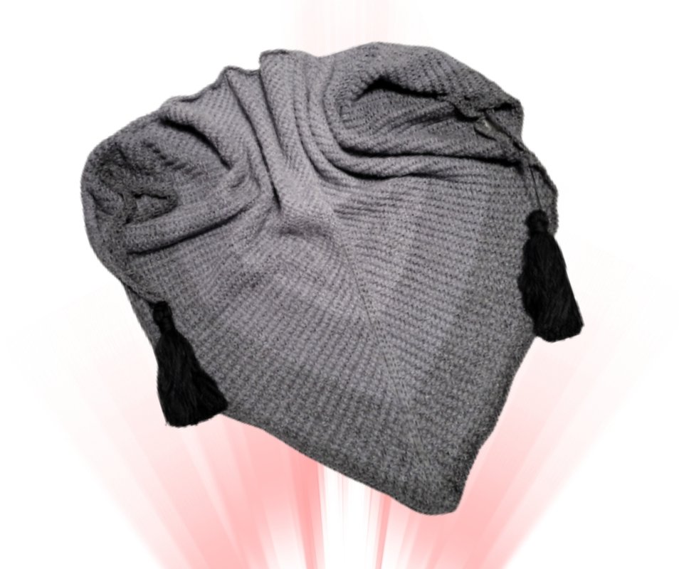 „This elegant triangular shawl is crocheted in Tunisian crossed stitch and finished with decorative tassels. The special technique creates a beautiful texture, giving the shawl a unique character. A slight curling at the edges, typical for this crochet technique, can easily be removed with gentle steaming. A stylish accessory for any season!“