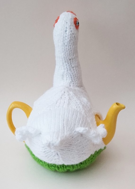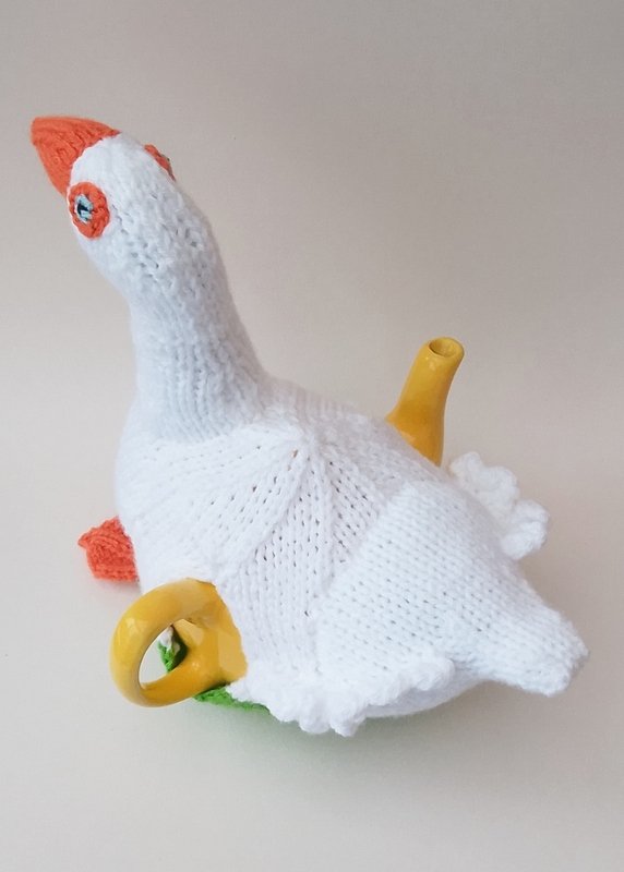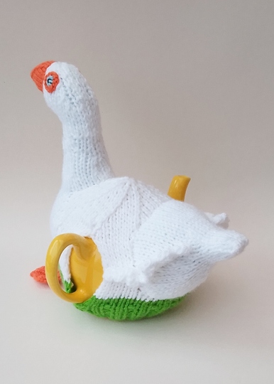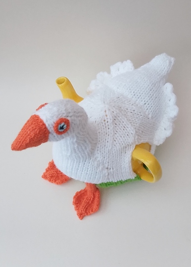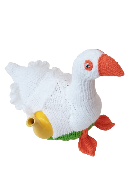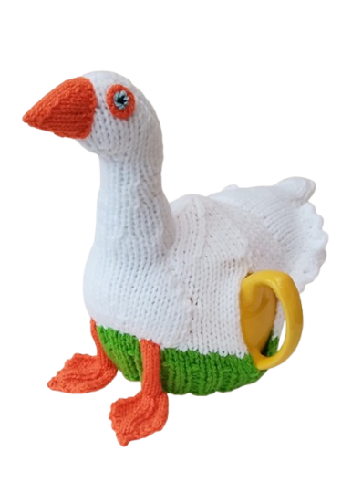Gaggle up some fun and warmth with our White Embden Goose Tea Cosy knitting pattern!