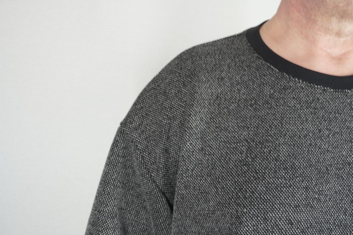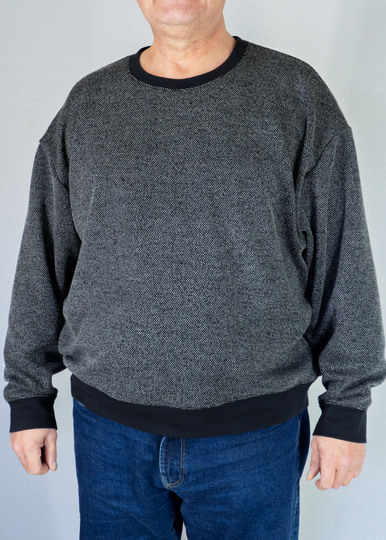 Additionally, the hem and sleeve cuffs can be made from the main fabric or ribbing fabric.