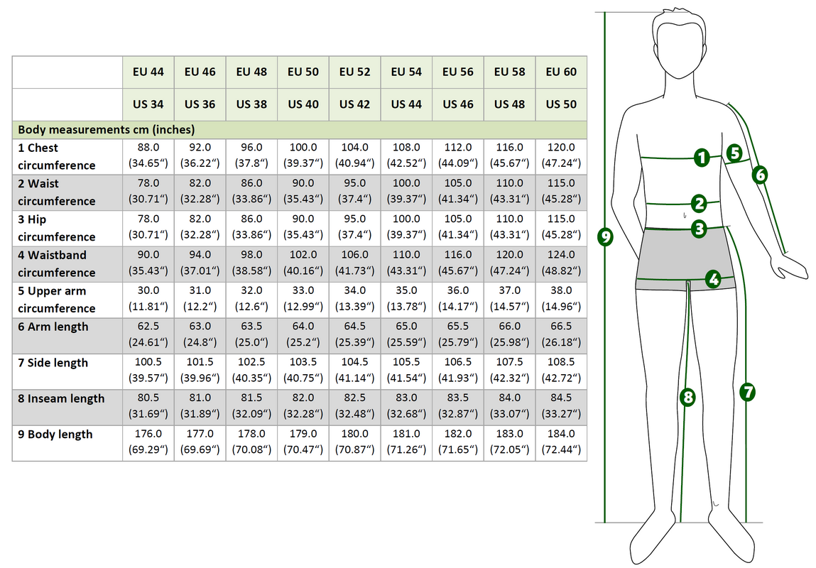 Sizes 44 to 60
