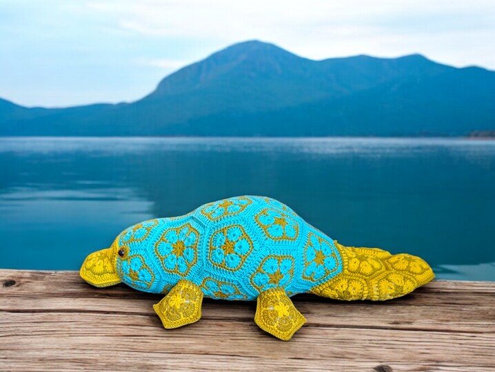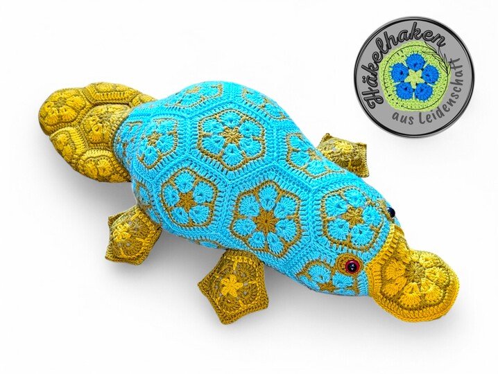 Discover the fascinating world of Australian fauna with this detailed crochet pattern for a unique platypus! Using the African Flowers technique, you'll create an extraordinary cuddly toy that's sure to catch everyone's eye. The step-by-step instructions with numerous pictures will guide you safely through the entire process, from crocheting the individual flower elements to assembling the platypus.