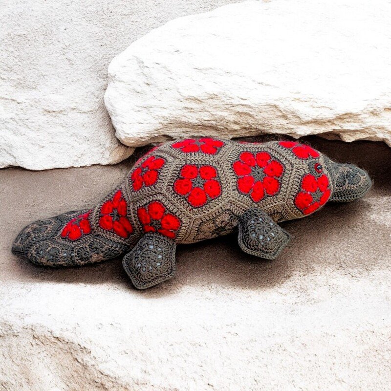 The platypus consists of 41 beautiful flower motifs that you crochet individually first and then assemble into an artistic whole.